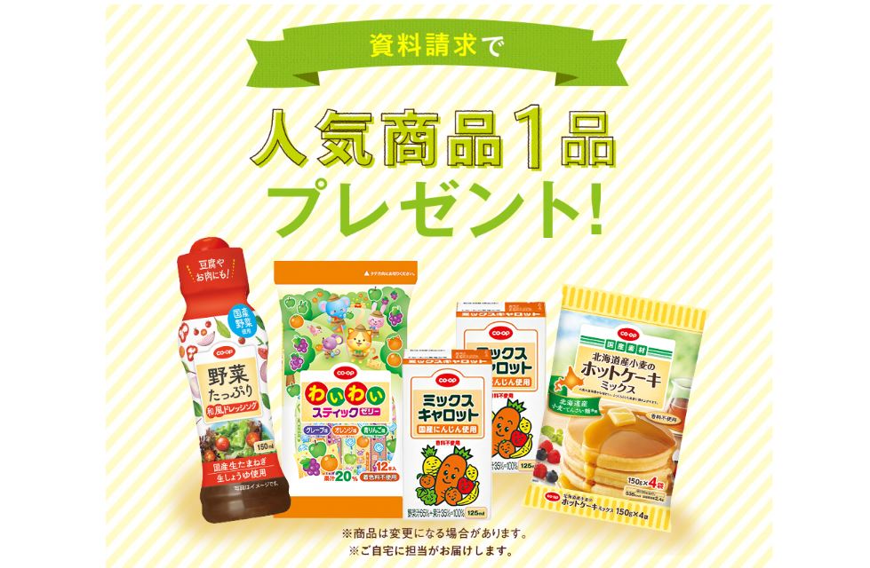 おうちコープの資料請求を行うと、人気商品を1点プレゼントしてくれます。