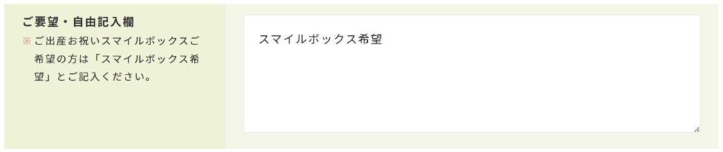 妊娠中~1歳未満のお子さんがいらっしゃる家庭にはスマイルボックスという嬉しい追加特典も用意さえれています。