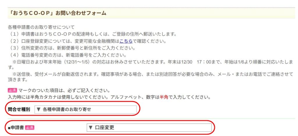 ⇒おうちコープお問い合わせフォームはこちら