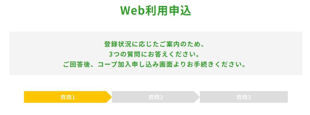 WEB入会申し込みに進むと、いくつか質問されます。